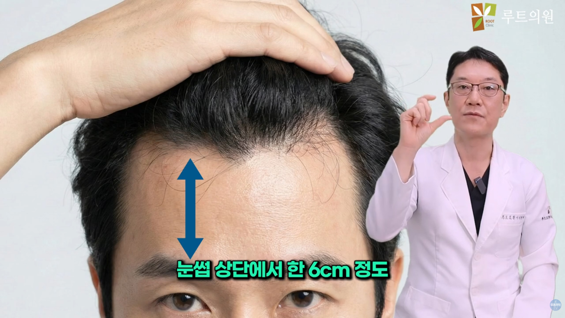 눈썹 상단에서 6cm 정도입니다.